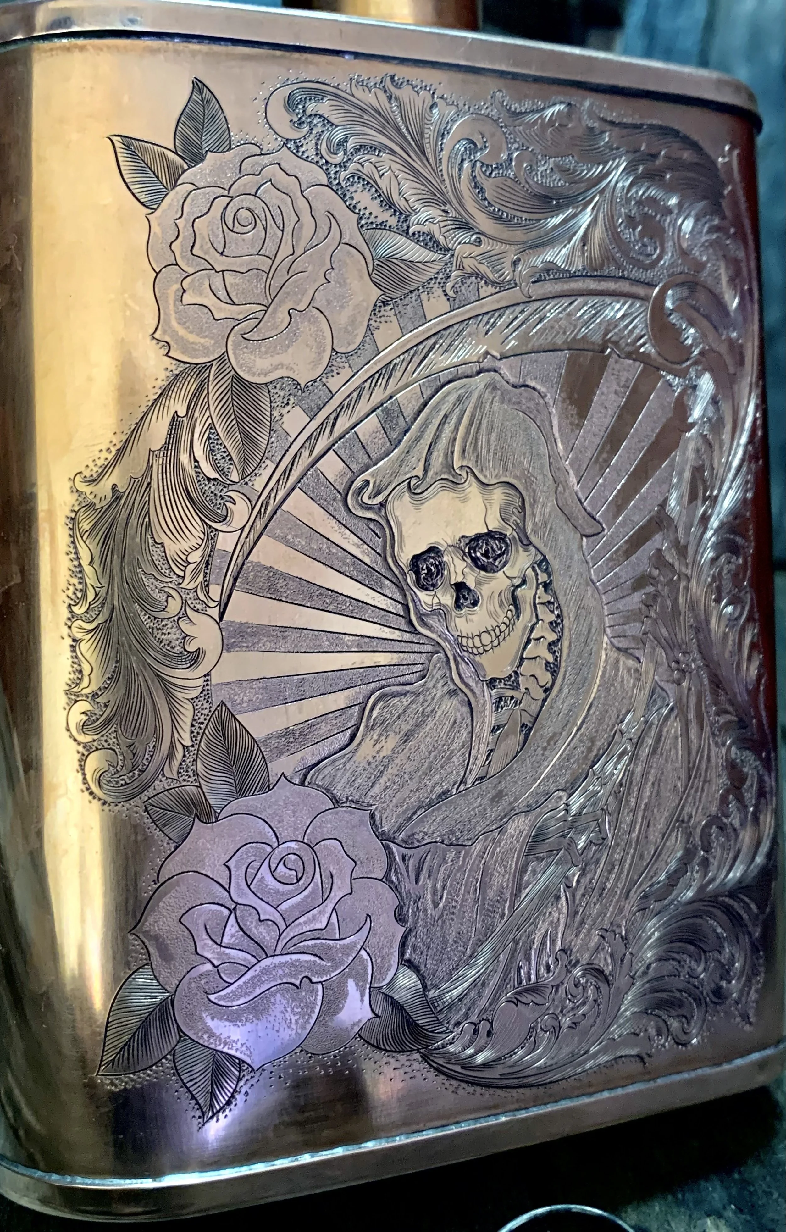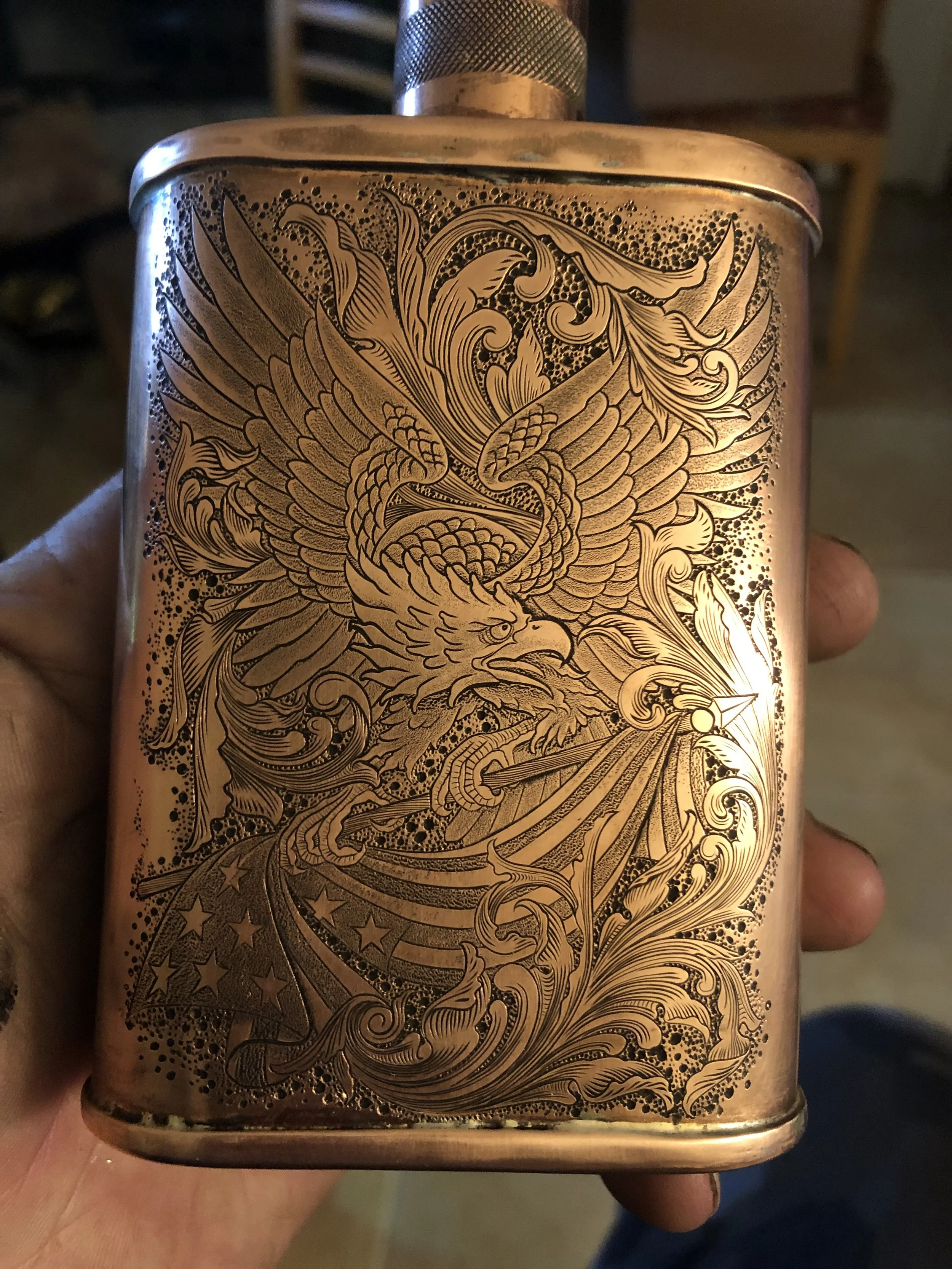 Explore our collection of finely crafted, hand engraved items including luxury firearms, copper flasks, knives and much more. Each piece is a unique work of art, meticulously handmade in the USA by skill artisan, Joel Illch. A blend of traditional craftsmanship with timeless design that will last generations.